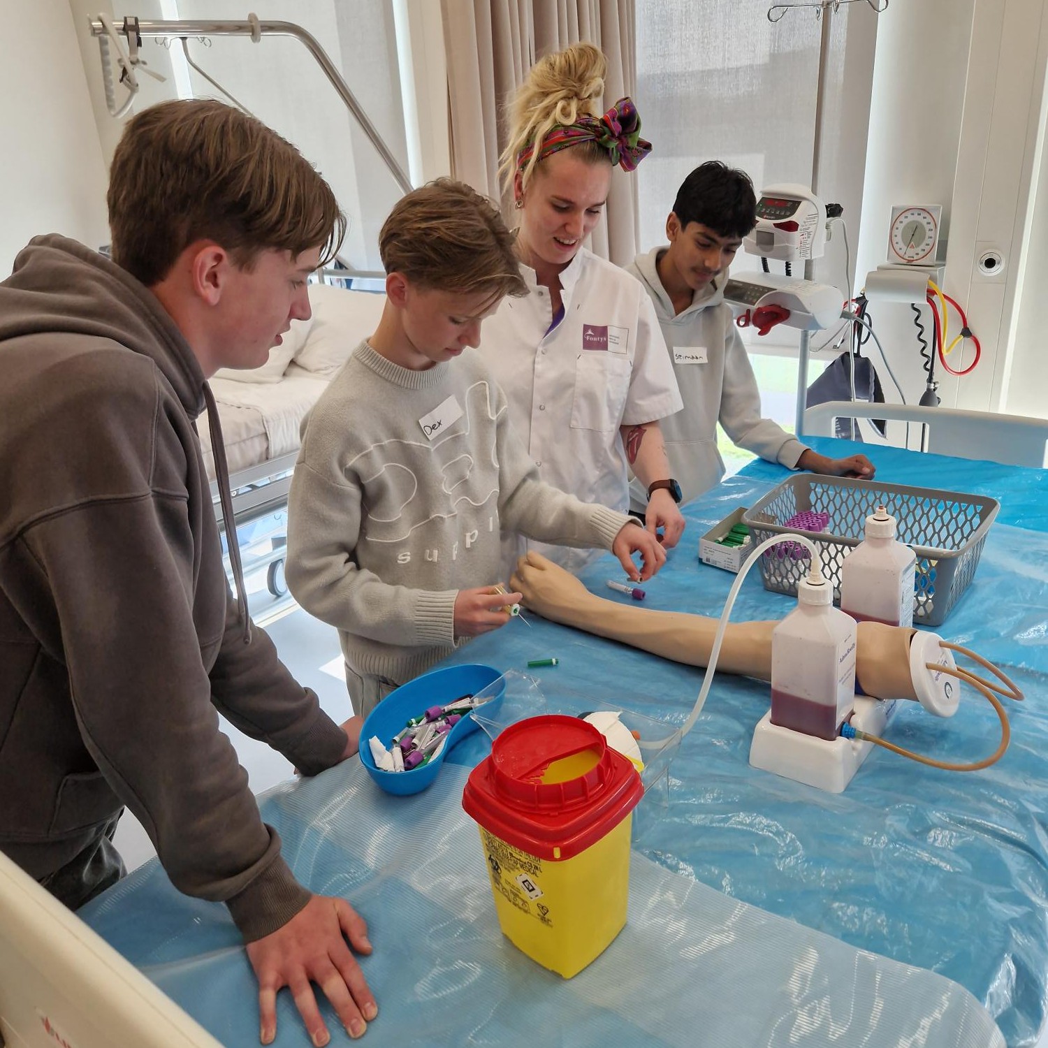 Ook bij Boys’ Day viel er veel te ontdekken. De dag startte met een presentatie van Jelle Reijngoudt, docent-onderzoeker bij Fontys en zorgprofessional met passie voor het vak. Hij liet zien hoe veelzijdig werken in zorg en welzijn kan zijn voor mannen. Daarna gingen ze op bezoek bij bedrijven uit de regio waar ze actief aan de slag mochten. Van bloedprikken en reanimeren in VR tot een kijkje in een simulatie-OK en een rolstoelrace in het zonnetje.